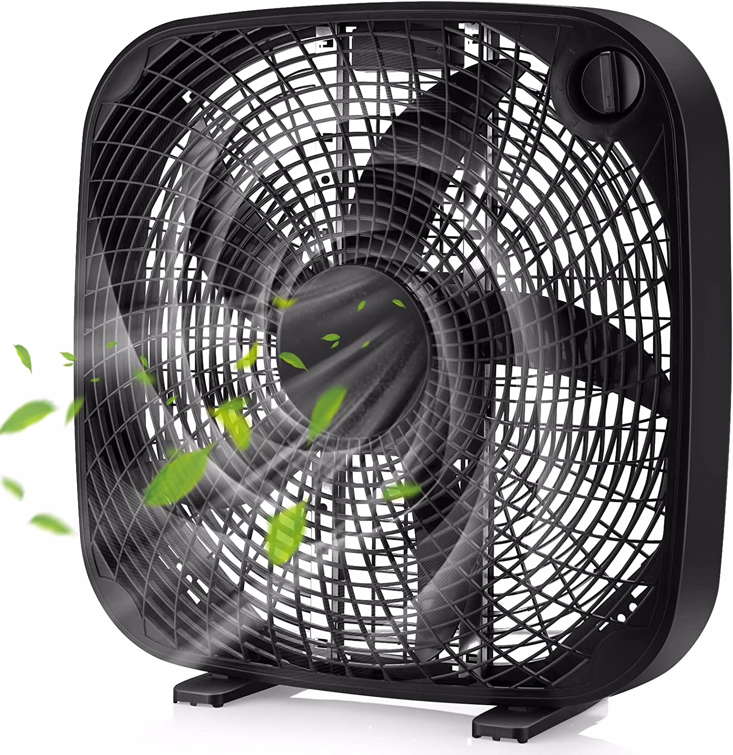 3-Speed Box Fan, 20 inch Floor Fan for Full-Force Circulation with Air Conditioner, 3 Settings, Adjustable Dial, Carrying Handle, Portable Floor Fan for Home, Compact & Lightweight (Black)